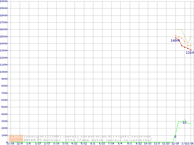 Travelstar 40GN (9.5mm,4200rpm,UltraATA/100,20GB/Platter,2MB,流体軸受)の最安値推移