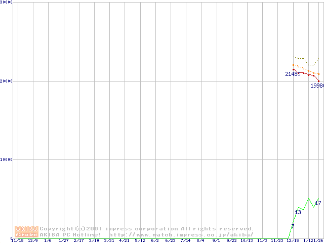 Travelstar 40GN (9.5mm,4200rpm,UltraATA/100,20GB/Platter,2MB,流体軸受)の最安値推移