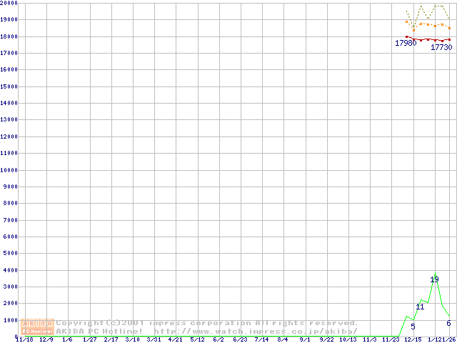 DiamondMax D540X (5400rpm,UltraATA/100,40GB/Platter,流体軸受)の最安値推移