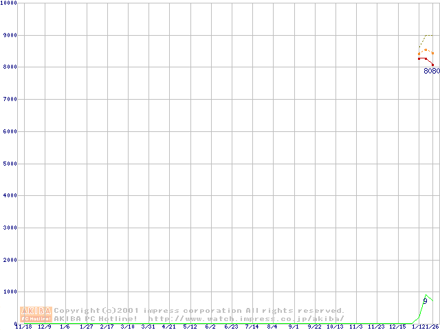 Socket 370 (PGA,FSB 100MHz,L2 64KB)の最安値推移