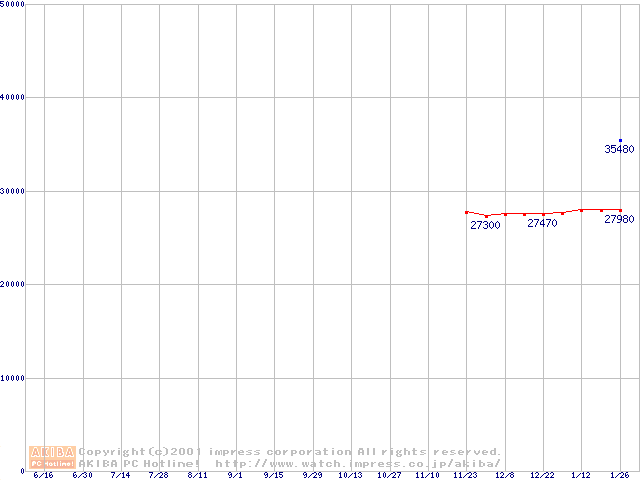 | [↑前グラフ]: | Deskstar 60GXP (7200rpm,UltraATA/100 2MB)の最安値推移 |
