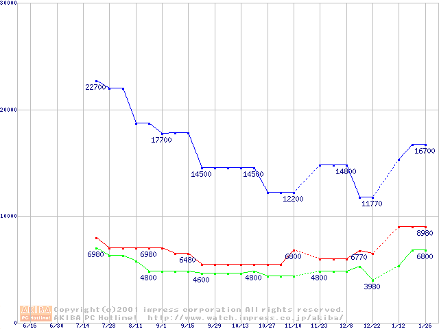 | [↓次グラフ]: | PC800 DRDRAM RIMMの最安値推移 |