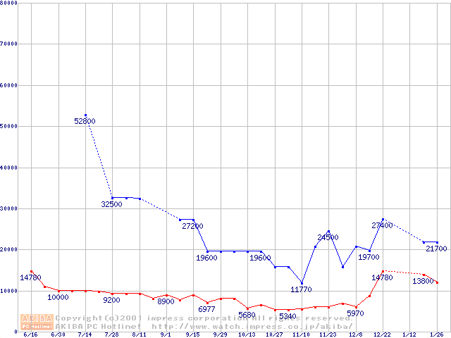 | [↓次グラフ]: | PC133 SDRAM DIMM CasLatency=3の最安値推移 |