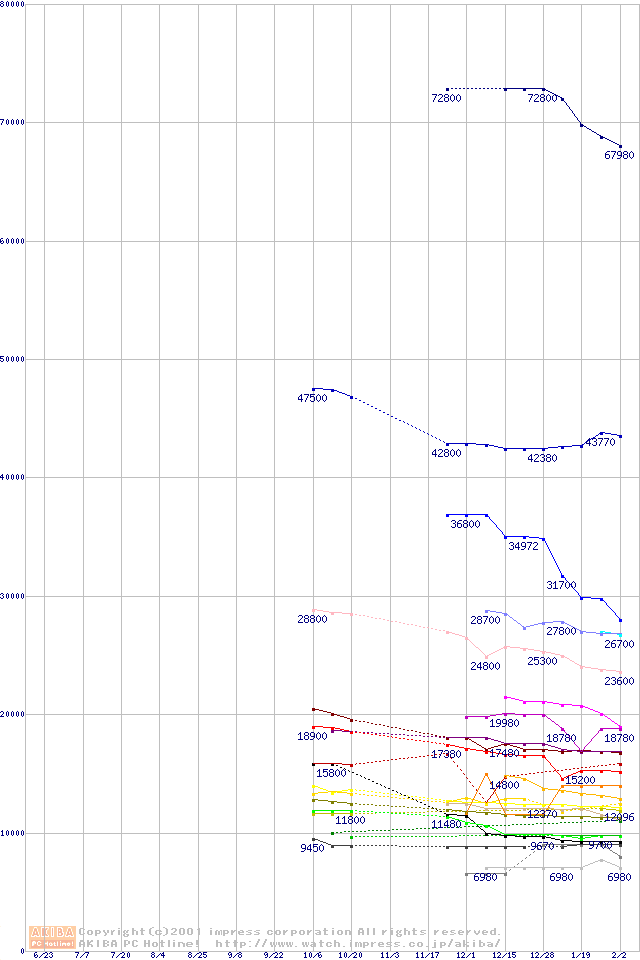 CPU主要製品の最安値推移