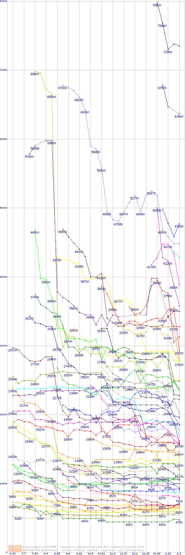 CPU主要製品の最安値推移