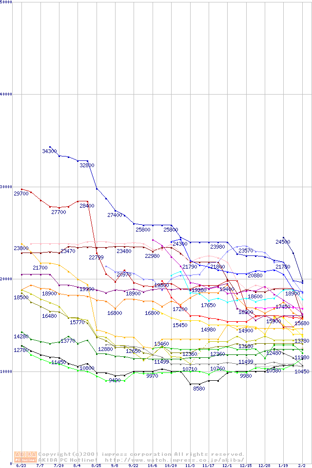 CPU主要製品(最安値1万円~2万円未満)の最安値推移