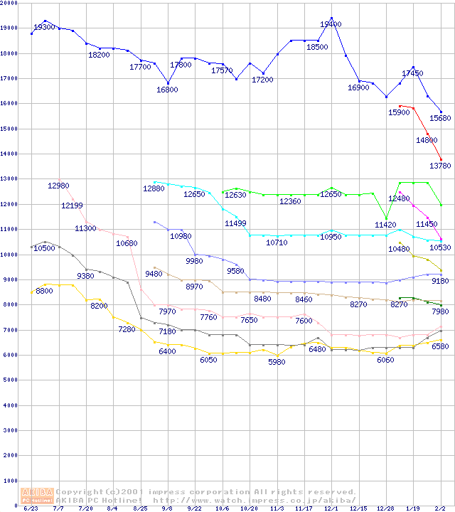 Socket 370・FSB 133MHzの最安値推移