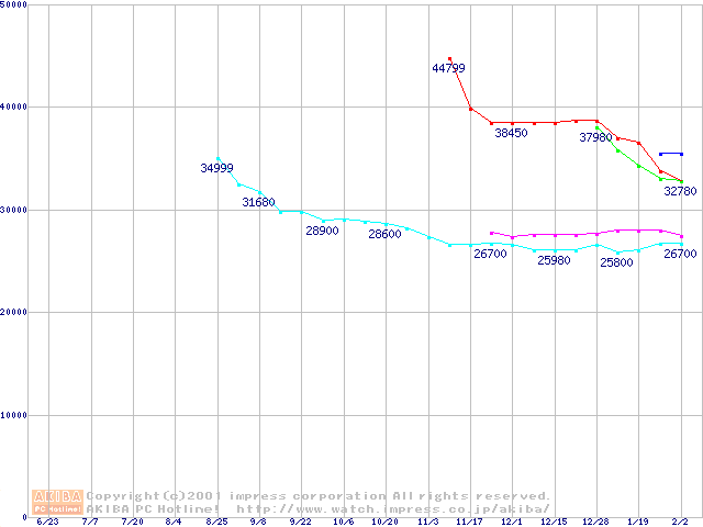 メモリ主要製品の最安値推移