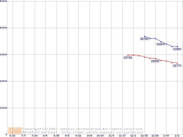 | [↓次グラフ]: | HDD 10GB~20GB未満(7200rpmクラス)の最安値推移 |