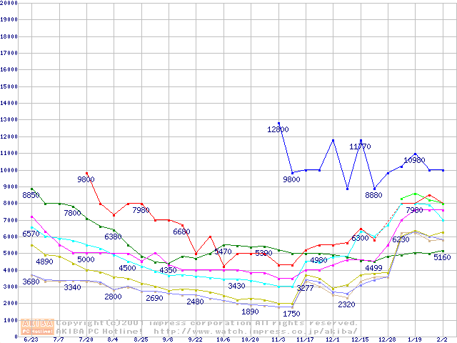 メモリ主要製品(最安値5千円~1万円未満)の最安値推移