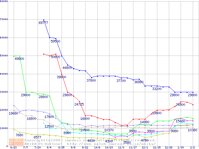 メモリ主要製品の最安値推移