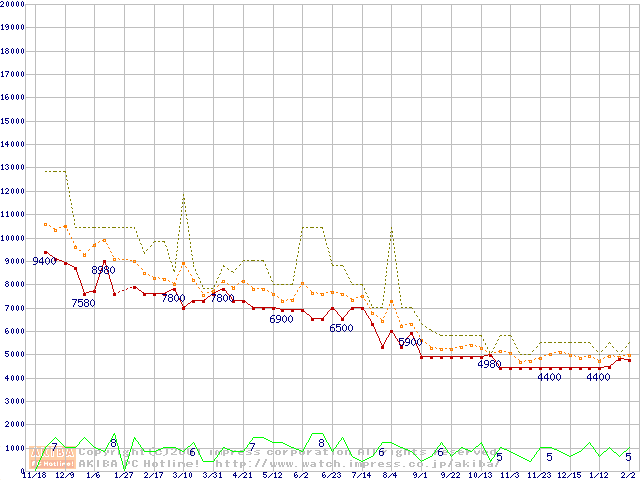 Socket 370 (PPGA,FSB 66MHz,L2 128KB)の最安値推移