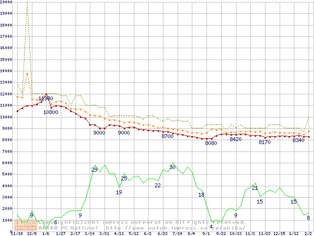 MPG3xxxAT (5400rpm,UltraATA/100)の最安値推移