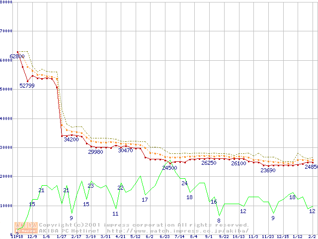 Pentium III 1GHz SECC2 リテールパッケージの価格推移
