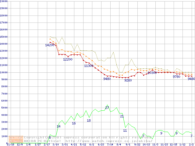 WD Caviar (5400rpm,UltraATA/100)の最安値推移
