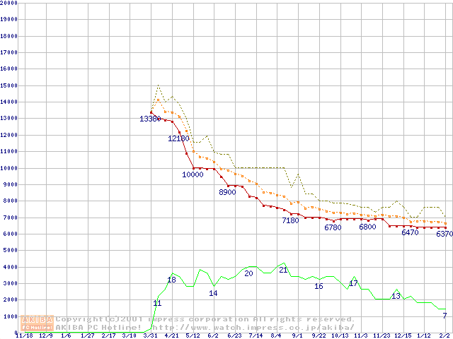 Socket A (Spitfire,PGA,FSB 200MHz,L2 64KB)の最安値推移