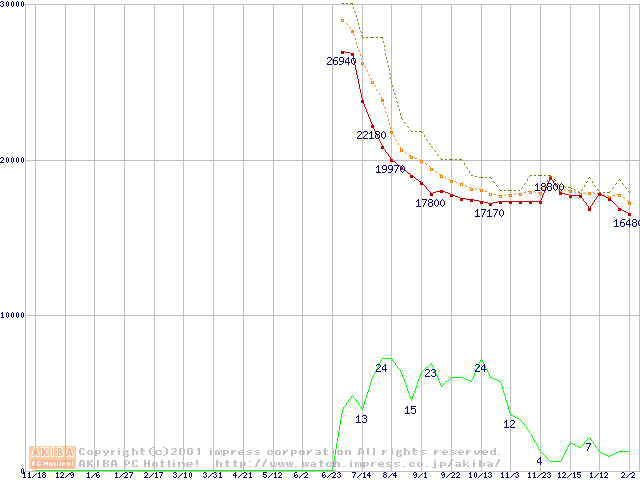 DiamondMax D540X (5400rpm,UltraATA/100,40GB/Platter)の最安値推移