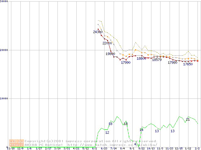 HDD主要製品(最安値1万5千円~2万円未満)の最安値推移