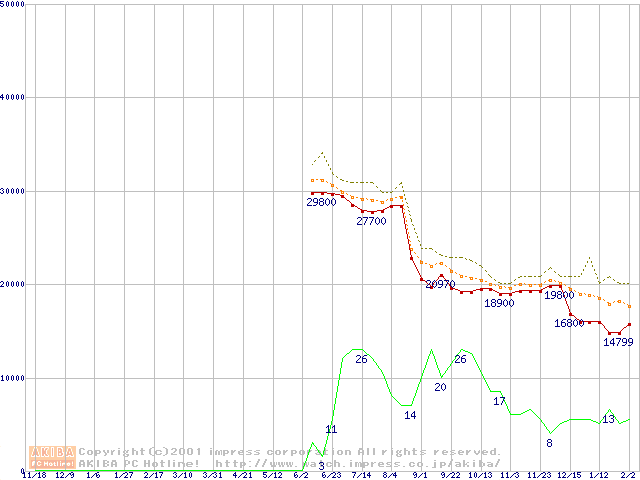 Socket A (Palomino,PGA,FSB 266MHz,L2 256KB)の最安値推移
