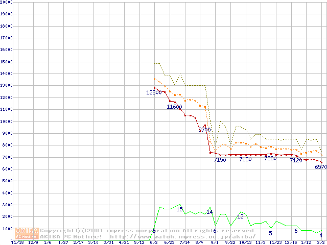 Socket A (Spitfire,PGA,FSB 200MHz,L2 64KB)の最安値推移