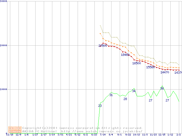 Barracuda ATA IV (7200rpm,UltraATA/100 2MB 40GB/Platter,流体軸受)の最安値推移