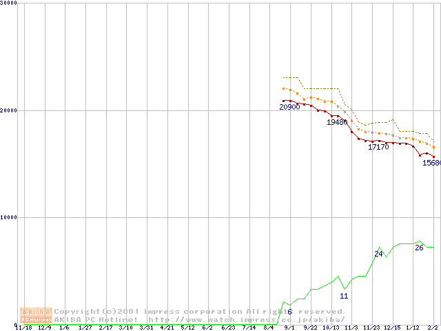 DiamondMax D540X (5400rpm,UltraATA/100,40GB/Platter)の最安値推移