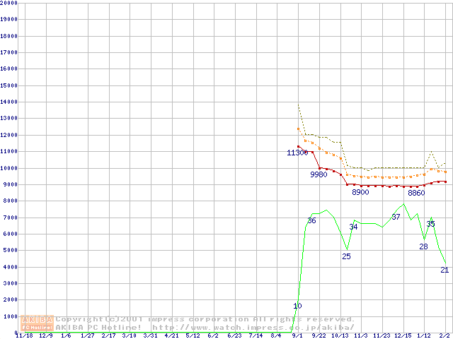 Celeron 1GHz FC-PGA リテールパッケージの価格推移
