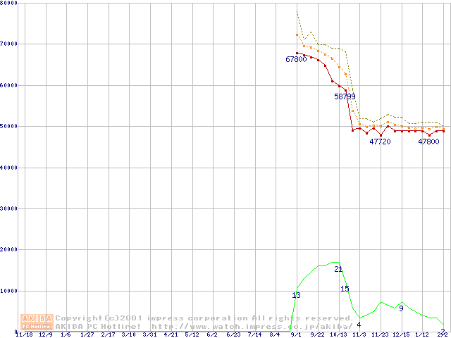 Pentium 4 2GHz(423pin)リテールパッケージ(RIMMなし)の価格推移