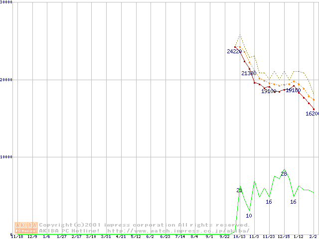 Socket A (Palomino,OPGA,FSB 266MHz,L2 256KB)の最安値推移