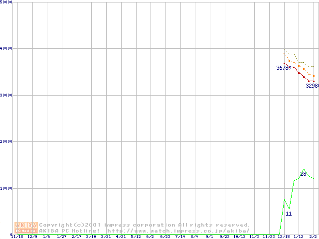 DiamondMax D540X (5400rpm,UltraATA/133,40GB/Platter)の最安値推移
