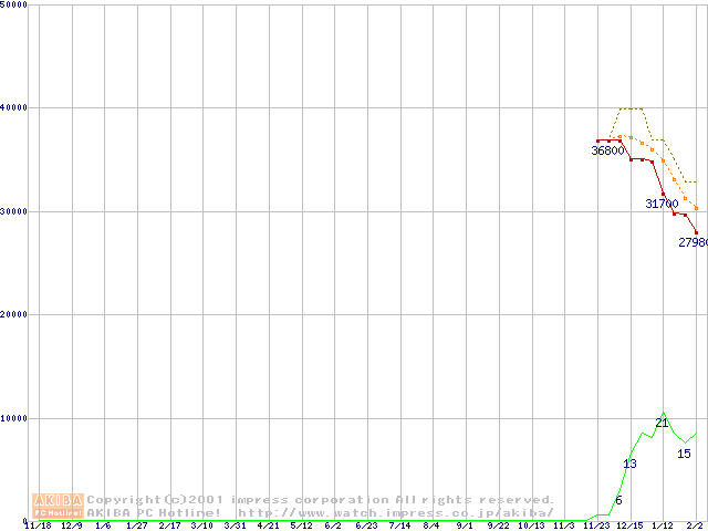Travelstar 40GN (9.5mm,4200rpm,UltraATA/100,20GB/Platter,2MB,流体軸受)の最安値推移