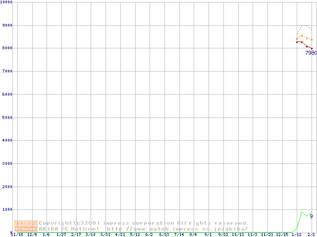 Socket 370 (PGA,FSB 100MHz,L2 64KB)の最安値推移
