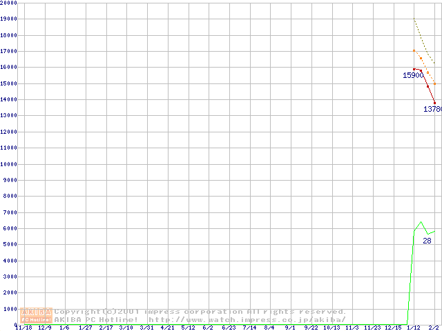 Celeron 1.30GHz FC-PGA2 リテールパッケージの価格推移