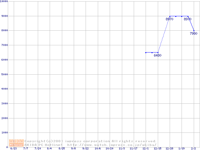 | [↑前グラフ]: | MHMシリーズ (9.5mm,4200rpm,UltraATA/66,2MB)の最安値推移 |