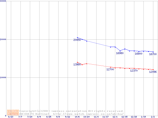 | [↓次グラフ]: | Travelstar 15GN (9.5mm,4200rpm,UltraATA/100,512KB,流体軸受)の最安値推移 |
