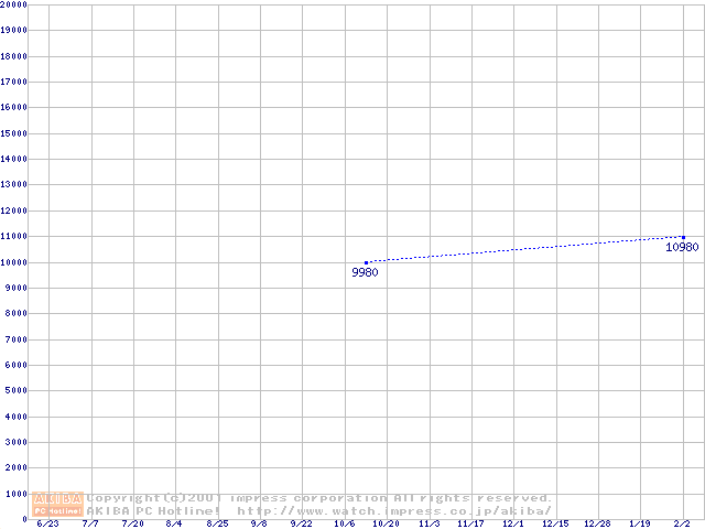 | [↑前グラフ]: | Travelstar 20GN (9.5mm,4200rpm,UltraATA/66,2MB/512KB/256KB)の最安値推移 |