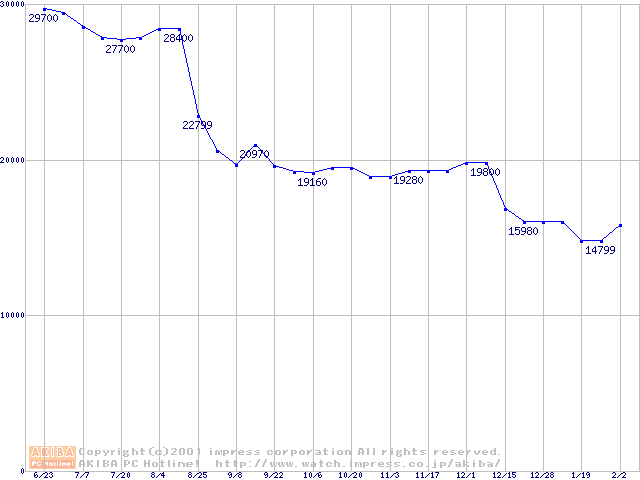 | [↑前グラフ]: | Socket A (Palomino,OPGA,FSB 266MHz,L2 256KB)の最安値推移 |
