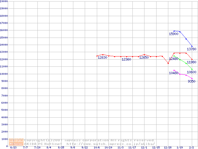 | [↑前グラフ]: | Slot 1 (SECC2,FSB 100MHz,L2 256KB)の最安値推移 |