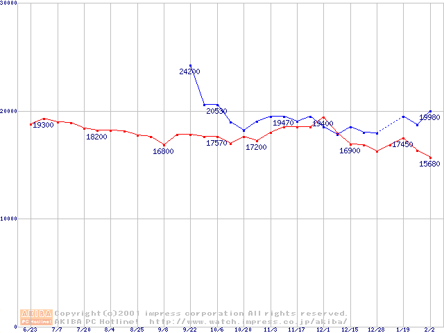 | [↓次グラフ]: | Slot 1 (SECC2,FSB 133MHz,L2 256KB)の最安値推移 |