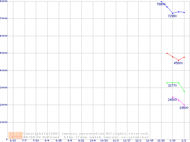 | [↑前グラフ]: | PC800 DRDRAM RIMM ECC対応の最安値推移 |