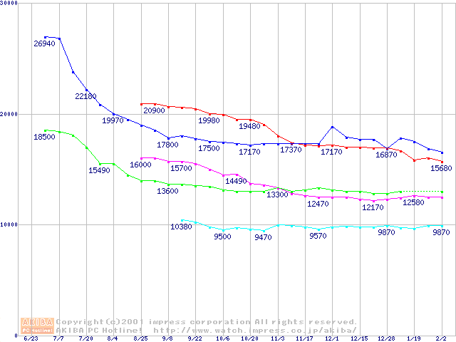 | [↓次グラフ]: | 541DX (5400rpm,UltraATA/100)の最安値推移 |