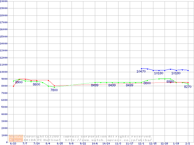 | [↑前グラフ]: | WD Caviar (5400rpm,UltraATA/100)の最安値推移 |