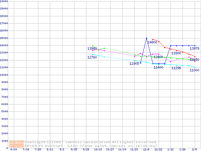 | [↑前グラフ]: | 2.5インチHDD 10GB~20GB未満(9.5mm厚)の最安値推移 |