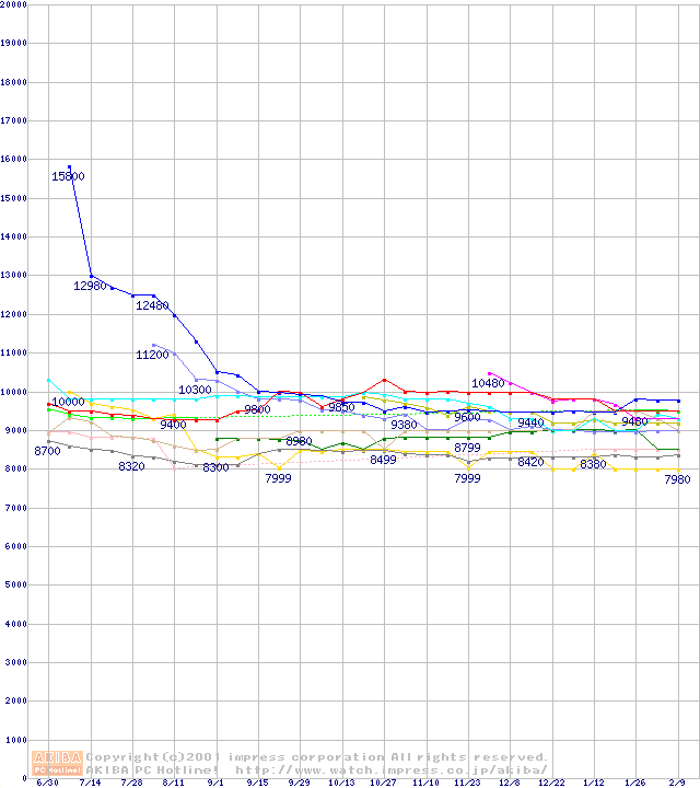 HDD主要製品の最安値推移