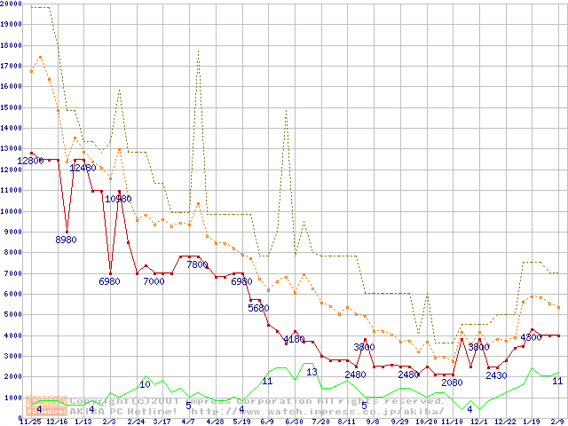 メモリ主要製品の最安値推移