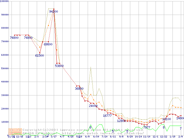 PC133 SDRAM DIMM CasLatency=3 ECC対応の最安値推移
