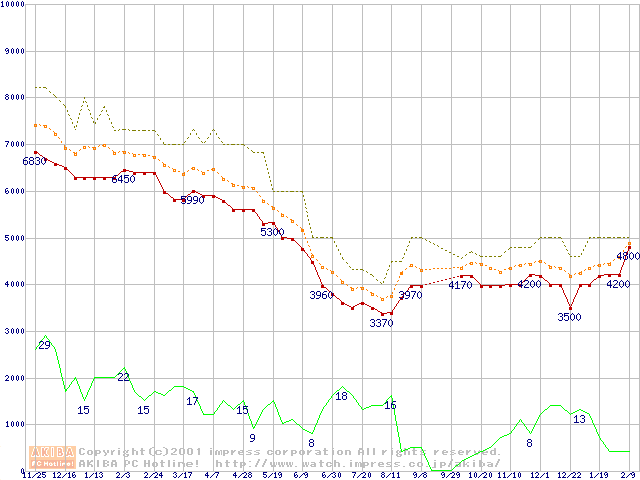 Socket A (Spitfire,PGA,FSB 200MHz,L2 64KB)の最安値推移