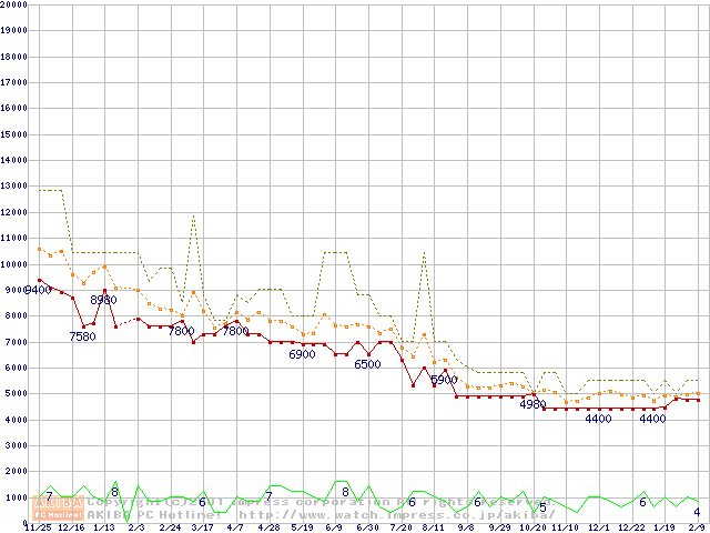 Socket 370・FSB 66MHzの最安値推移