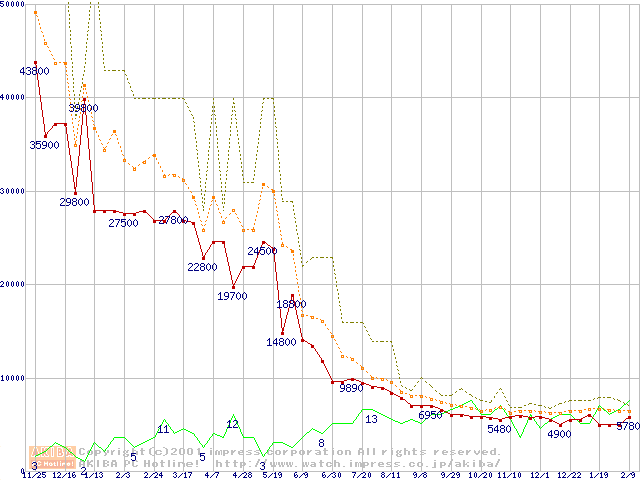 PC800 DRDRAM RIMM ECC対応の最安値推移