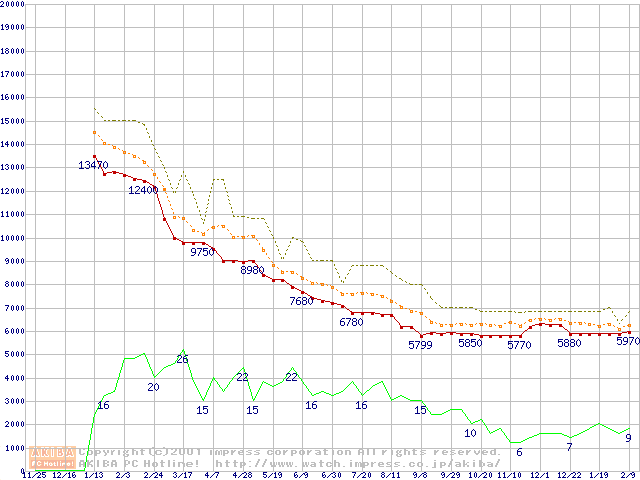 Socket A (Spitfire,PGA,FSB 200MHz,L2 64KB)の最安値推移